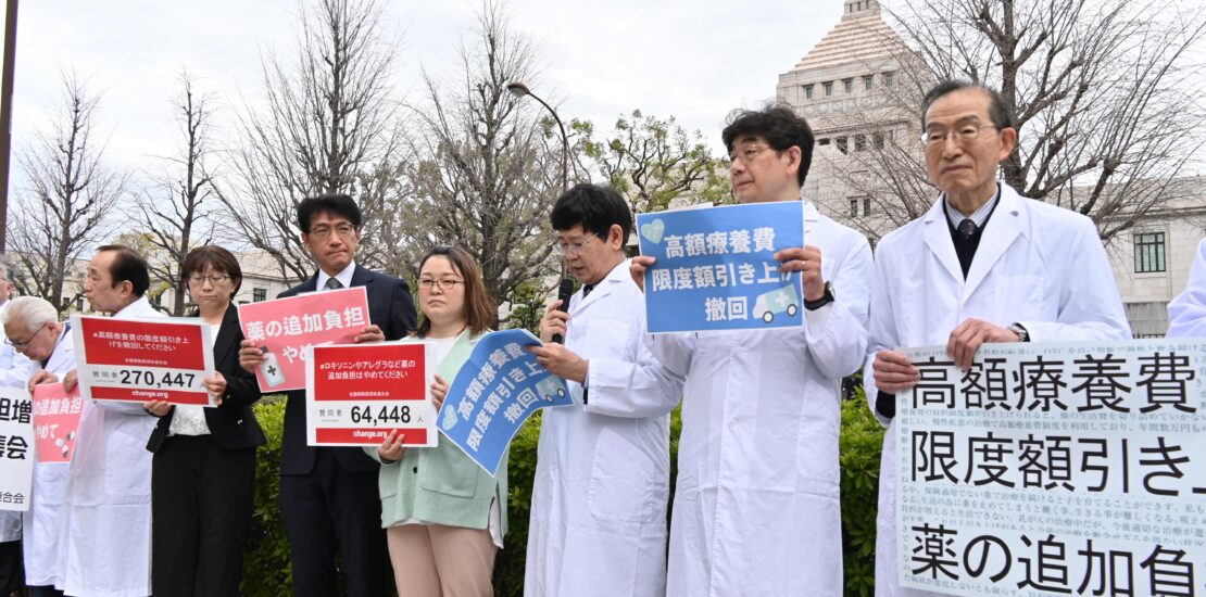高額療養費制度、薬の負担増の白紙撤回を求め国会前でアピール