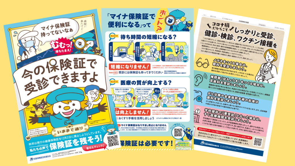 保団連の医療運動 社会保障は負担増の連続です。 医師医科医師の団体として患者さんや市民の健康や暮らしを守るため活動しています。 待合室キャンペーン 待合室での待ち時間に医療に関するお得情報や社会保障をとり巻く情勢などをお届けしています。 詳しくはこちら ポスター・パンフ 患者さんに知ってもらいたい情報をを分かりやすく提示しています。 詳しくはこちら 患者アンケート 患者さんの状況を把握し、私たちの活動に活かしています。 集めたアンケート結果をもとに国に要請しています。 詳しくはこちら 個人情報保護方針 / 個人情報保護法に基づく公表事項に関するご案内 / 個人情報に関する基本方針 / 共済制度にご加入の皆様へ / 休保制度勧誘方針