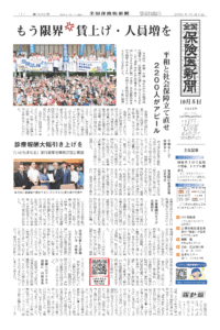 バックナンバーご意見・ご感想記事検索 記事を読む(PDF) ※記事PDFを閲覧するには保団連情報サービスへの登録が必要です。 ※パスワードをお忘れの方はこちらから再発行できます。 1面 もう限界 賃上げ・人員増を 平和と社会保障立て直せ2200人がアピール 診療報酬大幅引き上げを 「いのちまもる」実行委厚労事務次官に要請 2面 スマホ保険証 周知不十分で見切り発車 トラブル懸念も 【理事会ひととき】第20回保団連理事会 診療報酬大幅引き上げ、患者負担増反対へ大運動を 【主張】医療機関の物価高騰対策等を支える薬価改定を求める 3面 いまさら聞けない OTC類似薬 【中医協ひろい読み】長期収載品の選定療養 「廃止」が最多 【中医協ひろい読み】不足渦中に後発品9割に 安定供給回復を先送り 4~5面 地域連携で病を治す~がばい よかばい佐賀に来んさい~ 第40回保団連医療研究フォーラム 参加者募集 6面 【医・食・遊】第129回 新・味わいと文化の旅 犬山・長良川の旅 【非核・平和への希求】戦争と平和 被爆80年 ~核なき世界をめざして ③お金の流れ変え核廃絶を 中村 新太郎 氏 7面 【夏季セミナー】講座1 世代間対立の先にある危機 大内 裕和 氏 【夏季セミナー】講座2 沖縄で今、何が起きているか 前泊 博盛 氏 8面 患者のみなさまへ 医療用医薬品の保険除外に関する影響アンケートのお願い 個人情報保護方針 / 個人情報保護法に基づく公表事項に関するご案内 / 個人情報に関する基本方針 / 共済制度にご加入の皆様へ / 休保制度勧誘方針