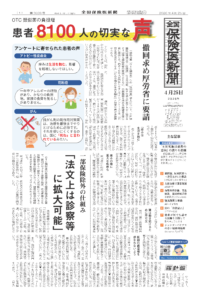 バックナンバーご意見・ご感想記事検索 記事を読む(PDF) ※記事PDFを閲覧するには保団連情報サービスへの登録が必要です。 ※パスワードをお忘れの方はこちらから再発行できます。 1面 OTC 類似薬の負担増 患者8100人の切実な声 撤回求め厚労省に要請 一部保険除外の仕組み「法文上は診察等に拡大可能」 2面 高額療養費 月額限度額の引き上げ「患者の意向」ではない 首相答弁の誤りを指摘 核兵器に金を貸すな DBOBキャンペーン 日本被団協ら3団体が三井住友FGと懇談 【主張】多忙な先生に多様な選択肢を ―研究会交流サイト 3面 【政策解説】大都市部で「新規開業規制」開始 ―医師偏在対策とりまとめ 4面 【学術研究会Update】第34回 保険診療における基本的な歯周外科手術から再生療法、歯周形成手術まで 永見 輝生 氏 5面 【社保情報】診療報酬改定に関する疑義解釈と略称 6面 【シマチャビ―離島苦―】第33回 与那国島 幻の「自治宣言」 渡辺 考 氏 【今日の公害問題】第282回 使用済燃料の乾式貯蔵を考える 7面 【勤務医コラム】第114回 患者さんが、何でも話せる医師を目指して 中村 起也 氏 【ウーマンズ・アイ】第176回 ジェンダーバイアスのない精神科臨床を目指して 内田 千代子 氏 8面 薬の追加負担が国会審議署名の力でストップを! 個人情報保護方針 / 個人情報保護法に基づく公表事項に関するご案内 / 個人情報に関する基本方針 / 共済制度にご加入の皆様へ / 休保制度勧誘方針